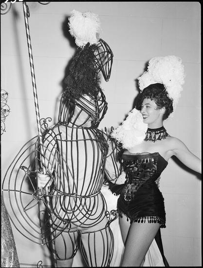 Art Students League Ball [Rita Gam on stage and costumed partygoers.]