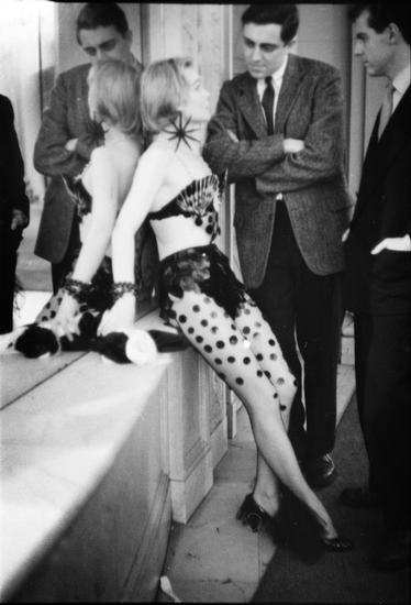 Art Students League Ball [Men taking pictures of a costumed woman.]
