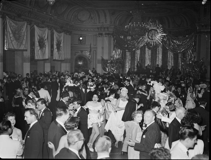 Art Students League Ball [Costumed partygoers dancing.]