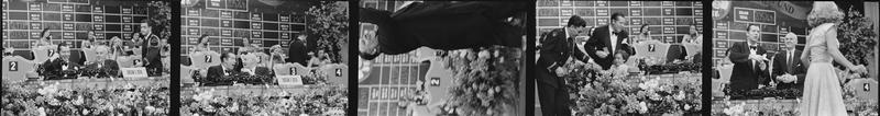 Milton Berle - Damon Runyon Cancer Fund [Milton Berle talking to other celebrities at the telethon.]
