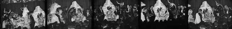 Art Students League Ball [Elaborately costumed guests with Deborah Kerr on a stage.]
