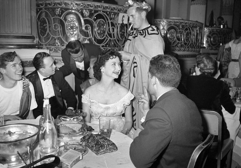 Art Students League Ball [Couple in formal attire at a table.]