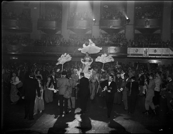Art Students League of New York "Dream Ball" [Woman entering ballroom on a litter.]