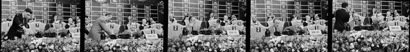 Milton Berle - Damon Runyon Cancer Fund [Milton Berle and other men answering phones at the telethon.]