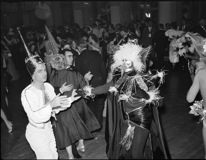 Art Students League Ball [Costumed partygoers dancing.]