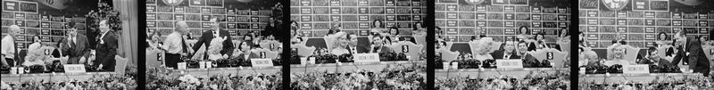 Milton Berle - Damon Runyon Cancer Fund [Men and a woman at the telethon.]