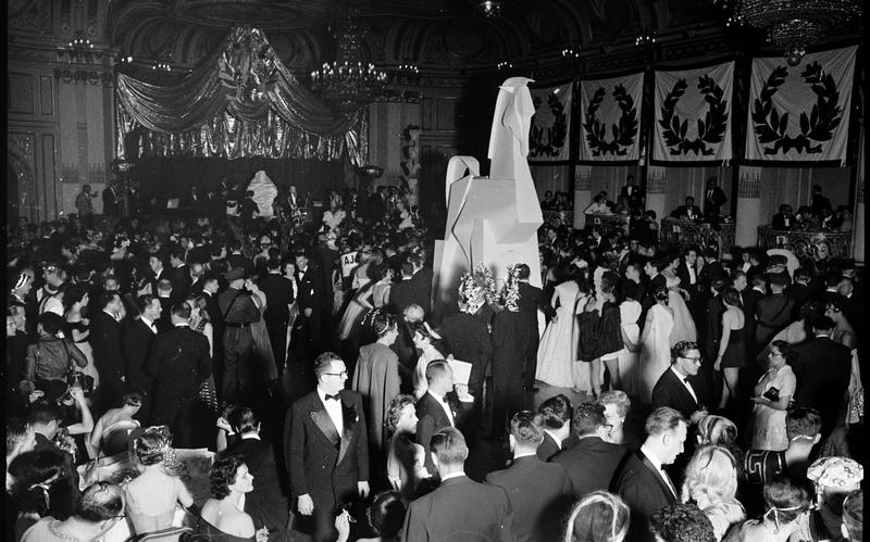 Art Students League Ball [Crowd at the ball with a statue of a horse.]
