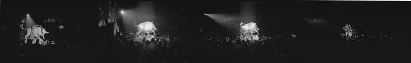 Art Students League Ball [A woman in a swan costume and a woman laying on a model of a bull entering the party on litters.]