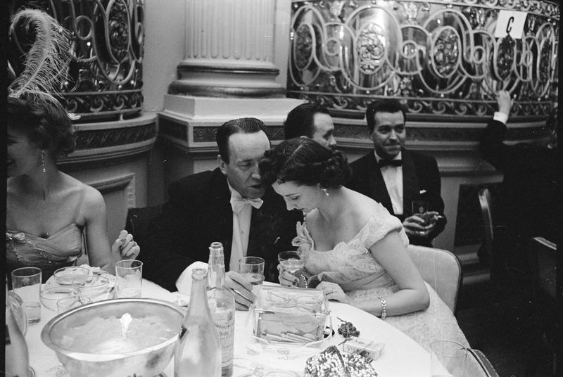Art Students League Ball [Couple at a table and an elaborately costumed man.]