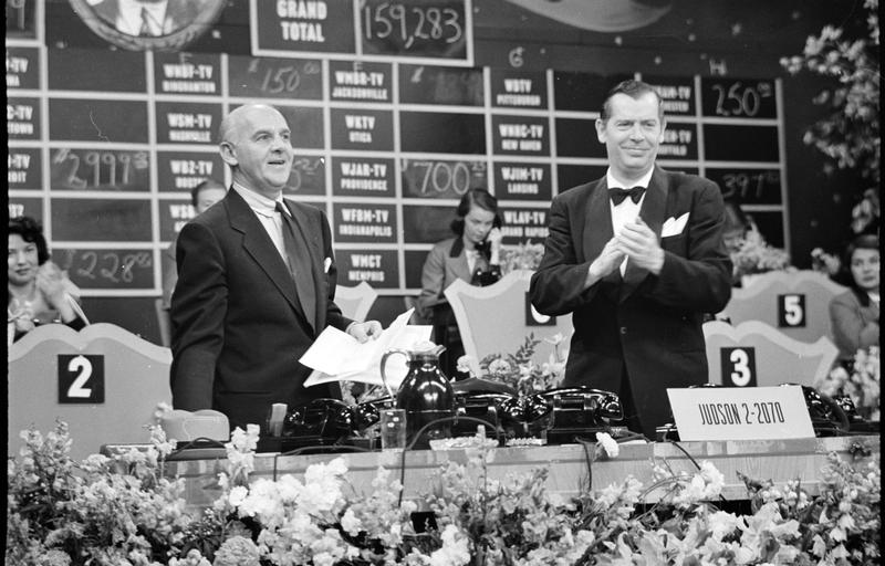 Milton Berle - Damon Runyon Cancer Fund [Milton Berle and another man at the telethon.]