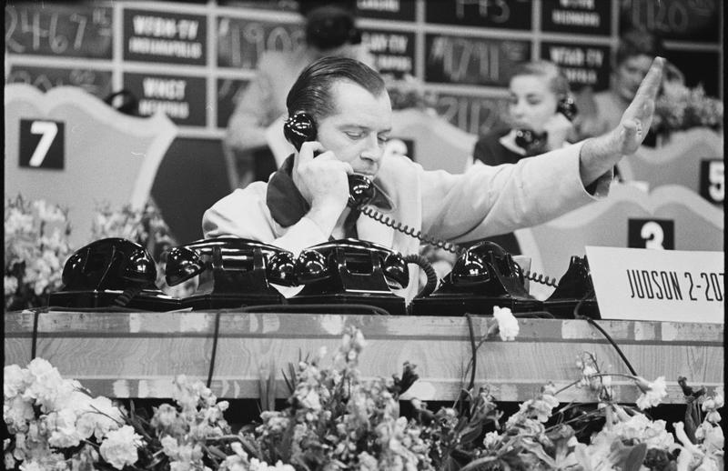 Milton Berle - Damon Runyon Cancer Fund [Milton Berle and other men answering the phones at the telethon.]