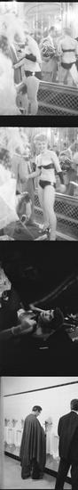 Art Students League Ball [Costumed men in restroom and partygoer in an elaborate costume.]