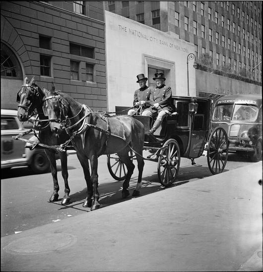 Hansom Cab [Two sailors and a woman in a horse-drawn carriage outisde the Plaza Hotel.]