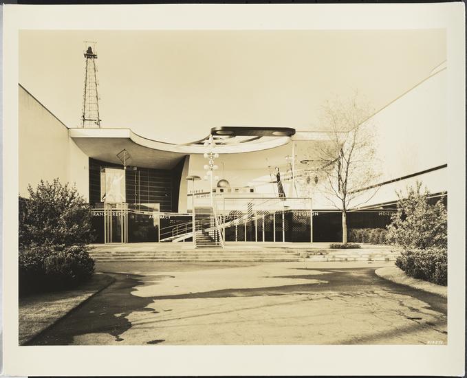 New York Worlds Fair. Glass Building. Fabricated glass display