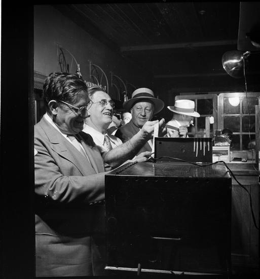 All Around the Town - Miscellaneous New York City Scenes [Man checking ticker tape at a Wall Street restaurant.]