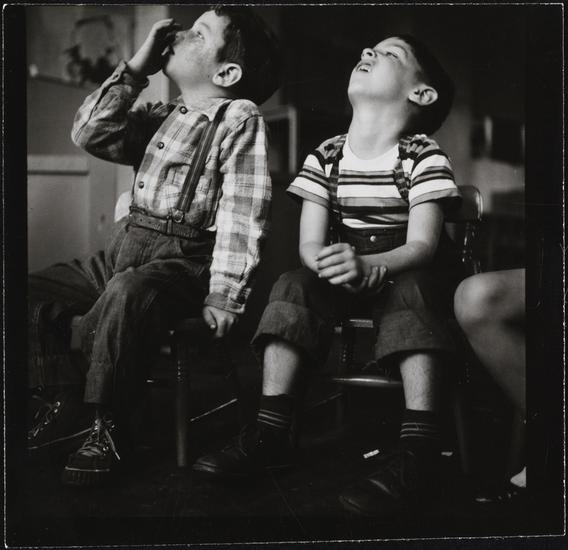 Children Listening to Reading of Books - Show Opinions by their Facial Expressions [Two boys looking up.]