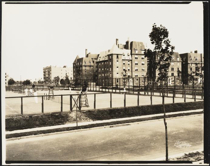 [Hayes Boulevard. Tennis courts and Chateau apartments.]