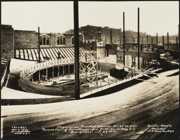 Abyssinian Baptist Church W. 138 St. N.Y.C. From Community House looking S.W. through Auditorium
