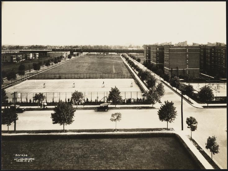 [Hayes Boulevard. Tennis courts and Chateau apartments.]