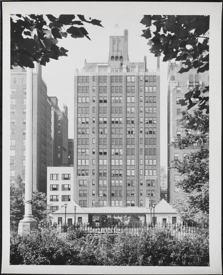 [7 Gracie Square. Apartment building. View from park.]