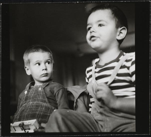 Children Listening to Reading of Books - Show Opinions by their Facial Expressions [Two boys looking up.]