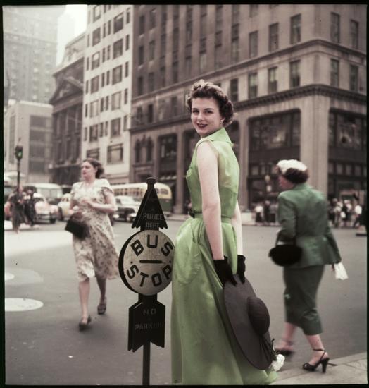 Fifth Avenue - Brigida Dammes, Laraine Day, Pat Geoghegan, Mary Damon. [Woman modeling on the sidewalk.]