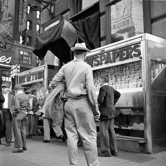 All Around the Town - Miscellaneous New York City Scenes [People browsing out of town newspapers at a 42nd Street newspaper stand.]