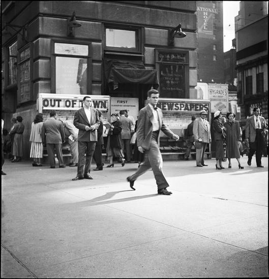 All Around the Town - Miscellaneous New York City Scenes [Men browsing at 42nd Street newspaper stands.]