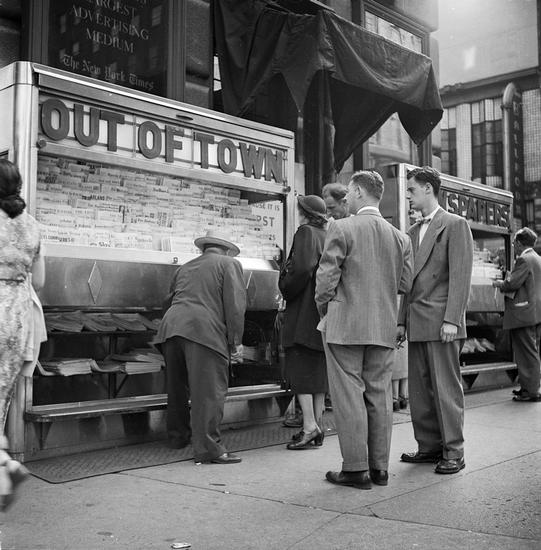 All Around the Town - Miscellaneous New York City Scenes [People browsing out of town newspapers at a 42nd Street newspaper stand.]