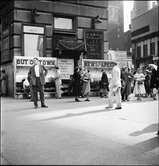 All Around the Town - Miscellaneous New York City Scenes [People browsing out of town newspapers at a 42nd Street newspaper stand.]