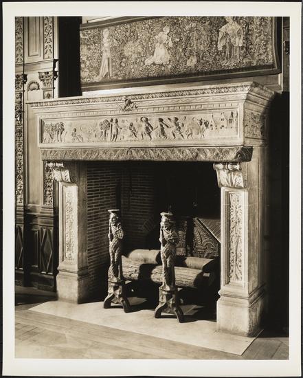 East 77th Street and Fifth Avenue. Senator William A. Clark residence. Interior, period room, detail of tapestry and frame