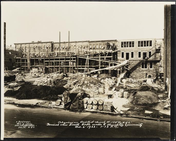 Abyssinian Baptist Church W 138 St. N.Y.C. Looking South along [...] trench for E. Wall to church & West wall to Community House