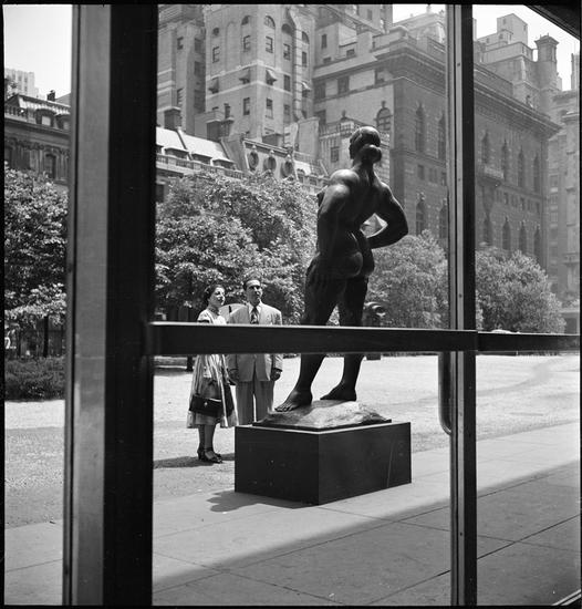 All Around the Town - Miscellaneous New York City Scenes [Couple looking at a sculpture at MOMA's sculpture garden.]