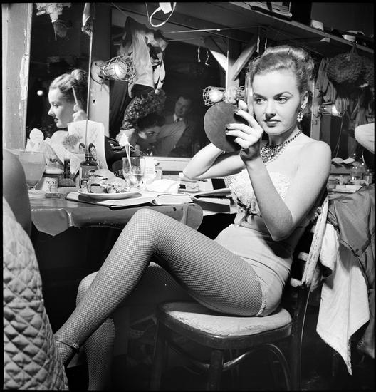 Night Clubs- Copa Showgirls [Showgirl applying makeup backstage.]