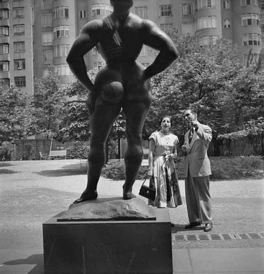 All Around the Town - Miscellaneous New York City Scenes [Couple looking at a sculpture at MOMA's sculpture garden.]
