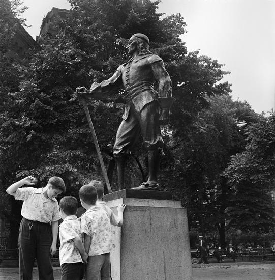 All Around the Town - Miscellaneous New York City Scenes [Boys looking at a statue of Peter Stuyvesant.]