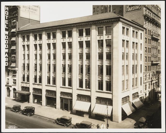 [Fifth Avenue and 54th Street. I. Miller shoe store, formerly Aeolian Building.]