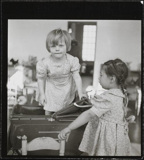 Orphanage [Woman washing a girl's knee as another girl plays at the sink.]