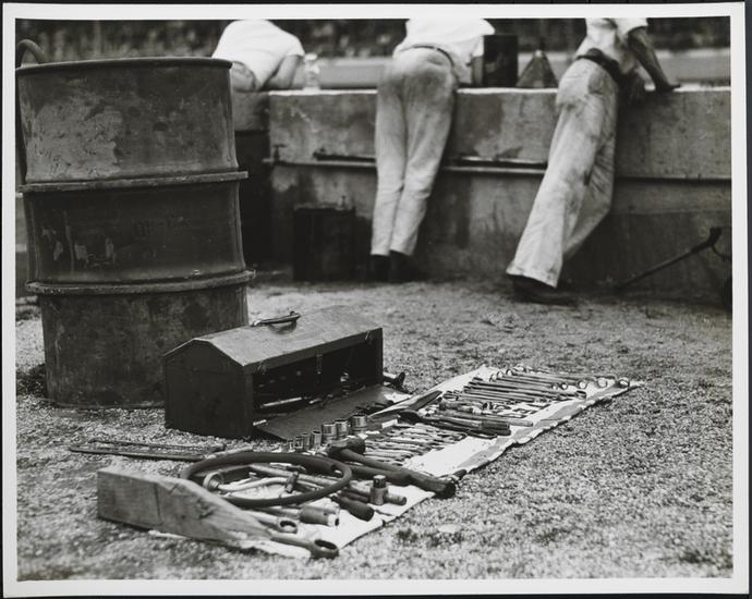 [Westbury. Roosevelt Raceways. Vanderbilt Race. Pit area.]