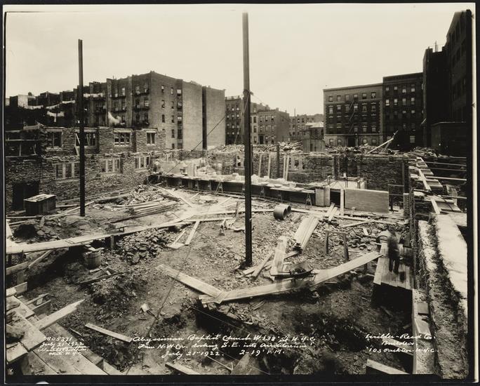 Abyssinian Baptist Church W. 138 St. N.Y.C. Looking S.E. along 138 St. front, showing high & low scaffolds
