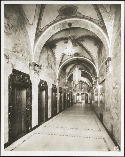 39 Broadway. Fred F. French building. Interior, elevator lobby