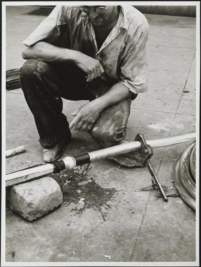 East 58th Street. Street opening, pneumatic drill tearing up pavement