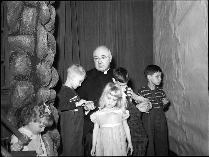 Portrait of Francis Cardinal Spellman with Prize Winning Children at his Residence.