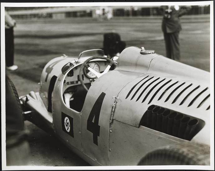 Westbury. Roosevelt Raceway. Vanderbilt Cup race. Racer 4 [Bernd Rosemeyer.]