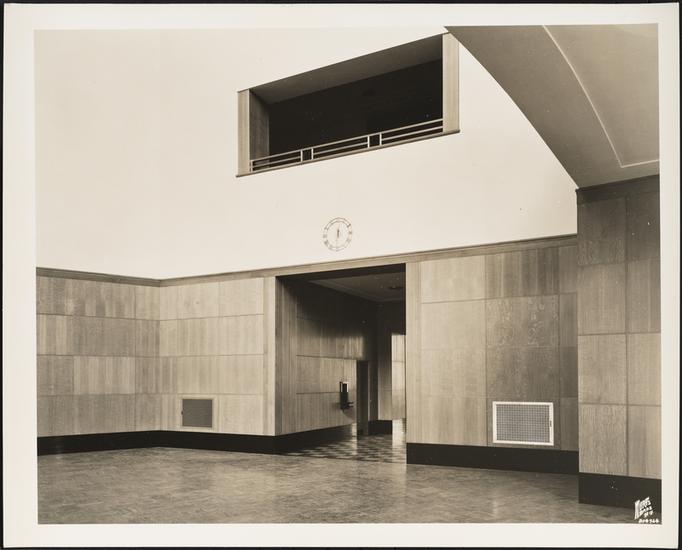 Grand Army Plaza and Eastern Parkway. Brooklyn Public Library, librarians' outer office at mantel.