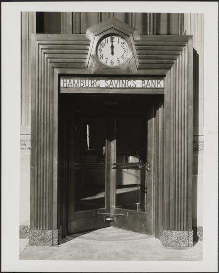 Crescent Street and Fulton Street. Hamburg Savings Bank. Entrance, revolving door