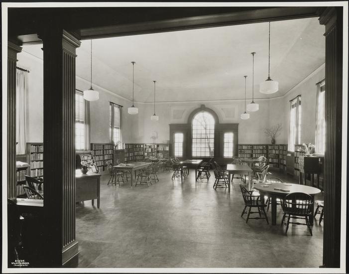 168th Street & Woodycrest Avenue. New York Public Library High Bridge Branch. Interior, reading room