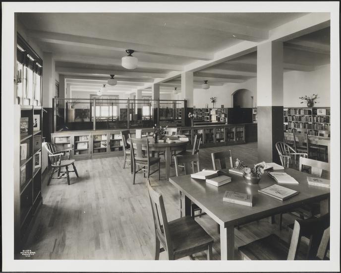 168th Street and Woodycrest Avenue. New York Public Library High Bridge Branch. Interior, reading room