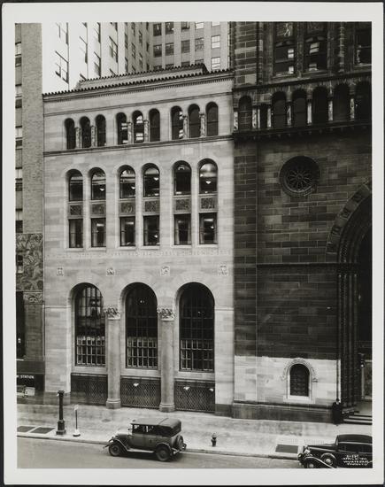 110 East 42nd Street. Bowery Savings Bank. Detail of lower stories being cleaned by Atlantic Terra Cotta Company