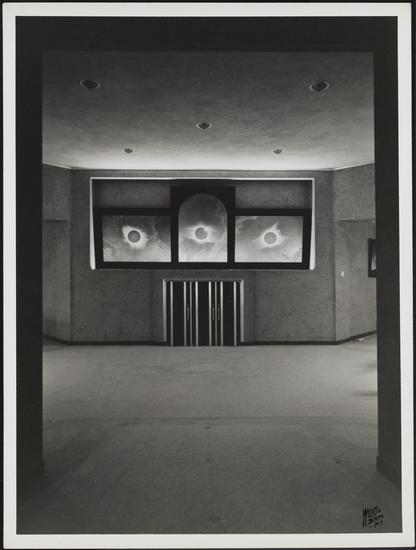 200 Central Park West. American Museum of Natural History. Hayden Planetarium. Interior, view on 2nd floor toward contrail images